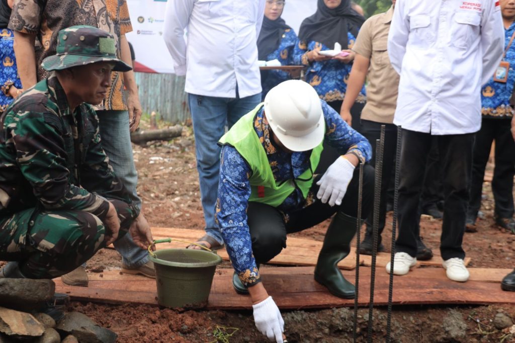 menghadiri kegiatan peletakan batu pertama pembangunan gerai Koperasi Desa Merah Putih di Jl. Jati Timur Raya, Kelurahan Bojong Menteng, Kecamatan Rawalumbu, Kamis (17/10/2025).