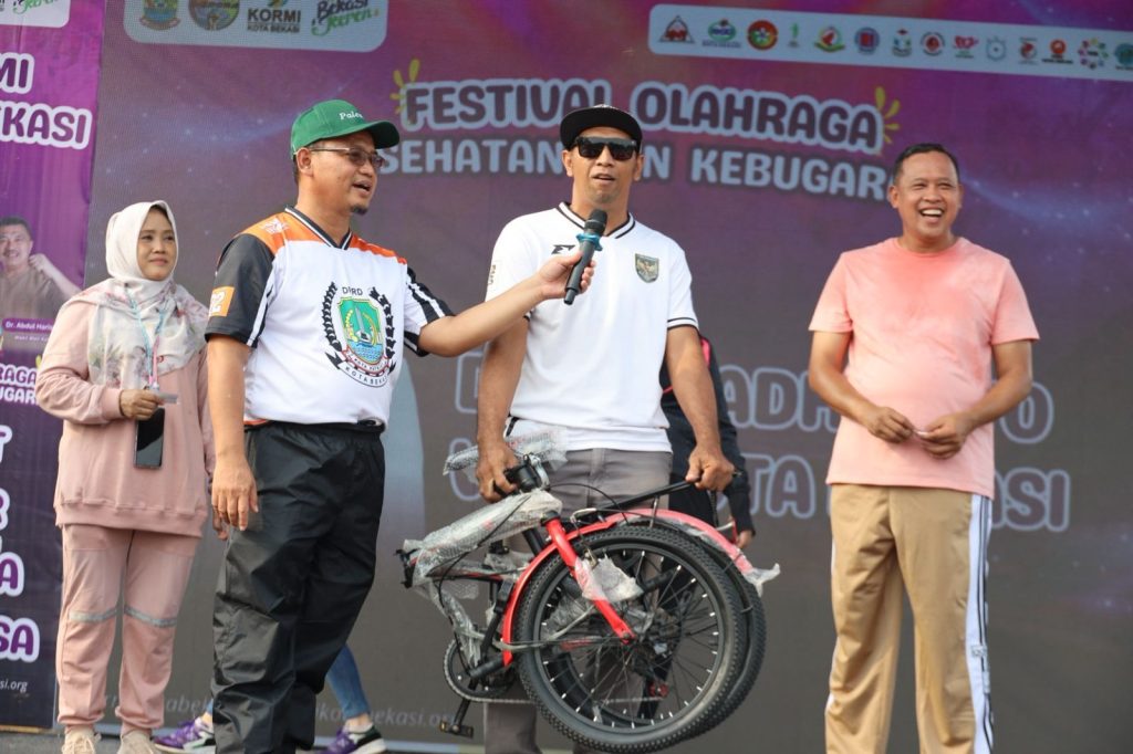 Kota Bekasi, Profesional – Wali Kota Bekasi, Tri Adhianto, membuka kegiatan Festival Olahraga Kesehatan dan Kebugaran di Lapangan Sepak Bola Mini Rawalumbu, Minggu (19/10).